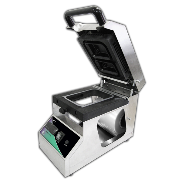 Termosigillatrice di vaschette con regolazione manuale della temperatura garantisce una sigillatura perfetta anche in presenza di grasso, unto, ecc. Vanta un sistema brevettato A SLITTA ANTI-SCOTTATURA per la saldatura di formati differenti di vaschette ed piano di lavoro fisso per garantire uniformità di saldatura su tutti i bordi.