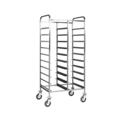 Capacità 30 teglie. Struttura in acciaio inox. Guide in acciaio inox. Ruote multidirezionali. Paracolpi in gomma