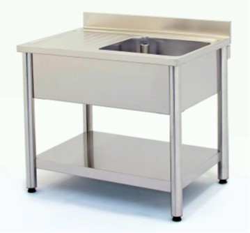 Top ad una vasca di 500x500x300h con sgocciolatoio a Sx operatore Struttura aperta con sottopiano Fornito completo di piletta + troppo pieno + sifone Motivo del declassamento: alzatina leggeremente ammaccata nel lato Dx